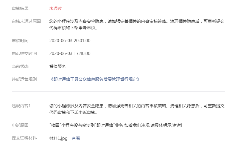 有点搞不懂原因,这个小程序主要是做食用糖,是能发布资讯但是后台均已接入官方给的内容检测接口了,但是还是被下架了