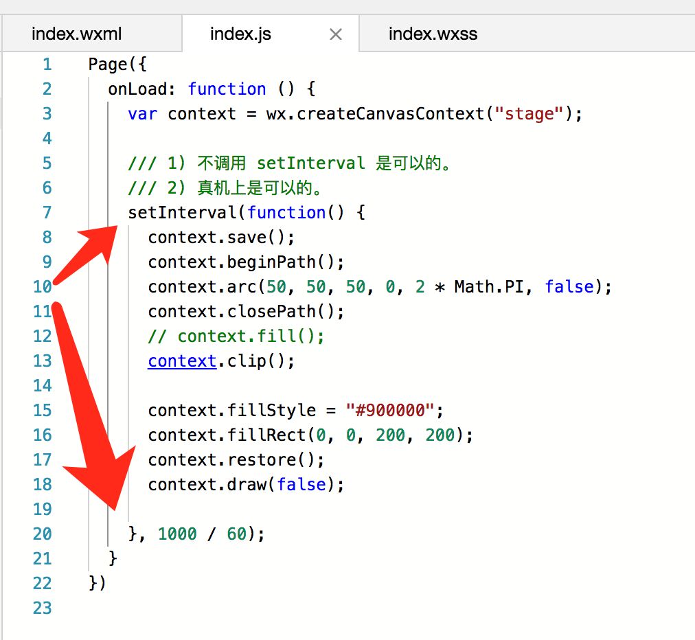 这个是完完整整复制的 clip 的示例中的代码,仅仅是把示例中的 drawImage 换成了 fillRect 就不行了。真的对你们的 API 很失望!!!