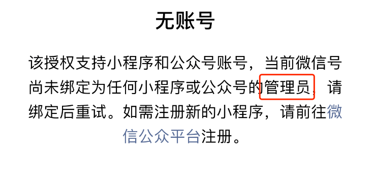 扫码授权需要管理员角色,从你的这个截图来看,你的微信应该是没有绑定作为管理员角色的账号。