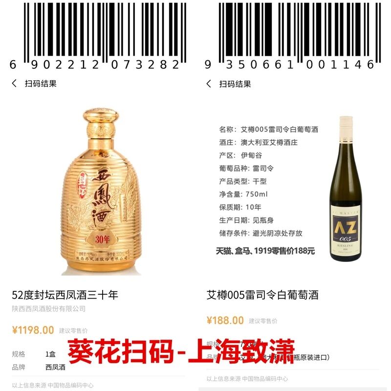 目前微信条形码扫描服务,收录中国物品编码中心,微信小程序,微信公众号等价格信息展示。