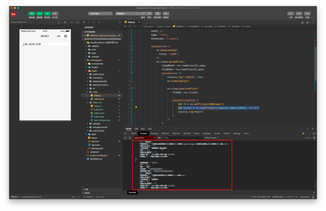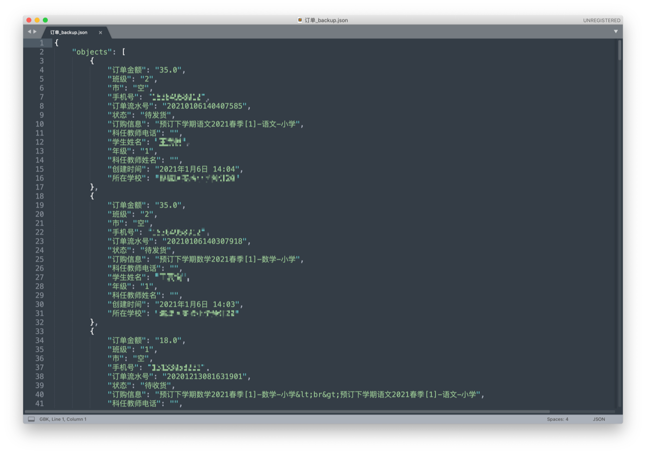 问题出在第 4 步。由于导出的 订单.json 文件使用的是 GB2312 编码,小程序端读出来的中文全部乱码。wx.getFileSystemManager().readFileSync 中的参数无法指定 GB2312 编码,也试了很多其他方法都无效,请问各位老师有什么方法或解决思路吗?感谢。