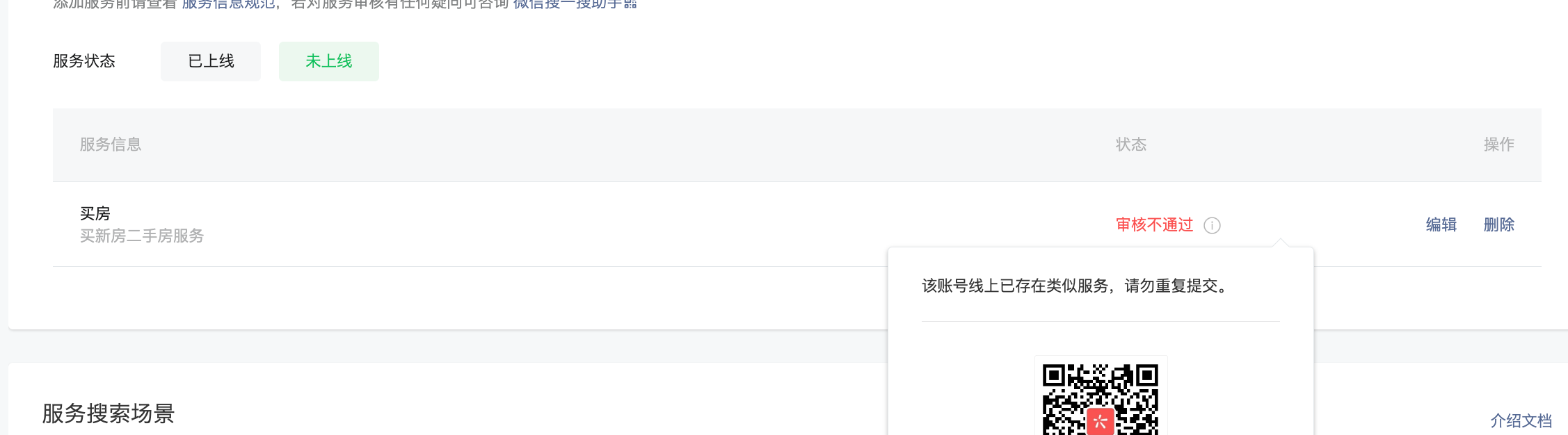 公众号服务标签“买房”审核不通过原因说有类似服务,请审核明确具体是哪个服务标签冲突?