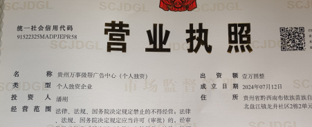 企业名称:贵州万事微帮广告中心(个人独资)