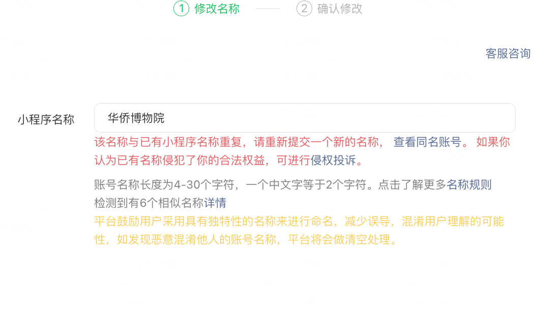 你好,经核实,已有门店小程序使用该昵称,建议提交材料释放该昵称