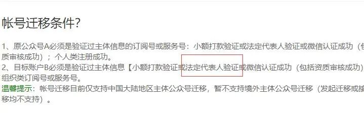 没有以法定代表人验证,这可好,迁移还能通过吗?我有点吐血,注册太快没有仔细看完。