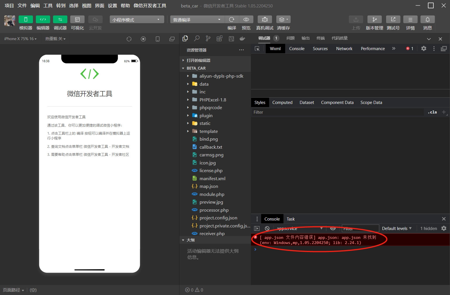 兄逮 是不是串台了。提示很清楚啊,没找到app.json文件啊
