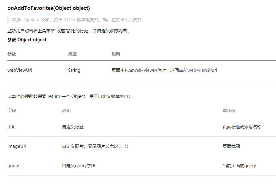 https://developers.weixin.qq.com/miniprogram/dev/reference/api/Page.html#onAddToFavorites-Object-object