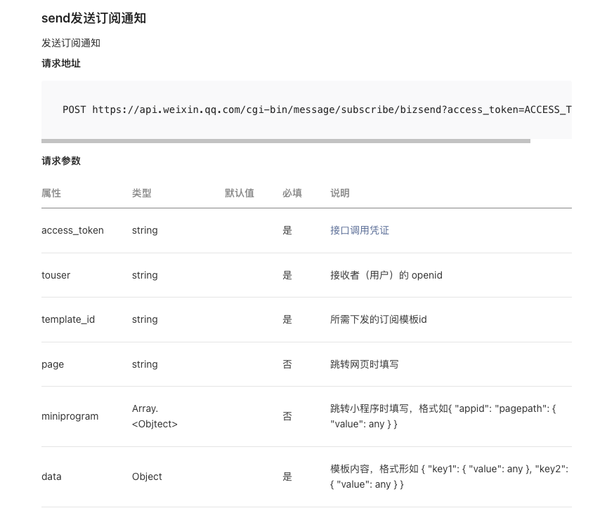 你的请求参数是错误的,请参考文档:https://developers.weixin.qq.com/doc/offiaccount/Subscription_Messages/api.html#send%E5%8F%91%E9%80%81%E8%AE%A2%E9%98%85%E9%80%9A%E7%9F%A5