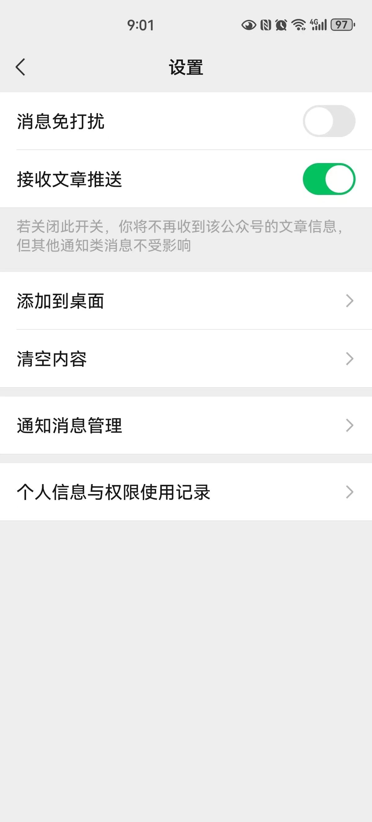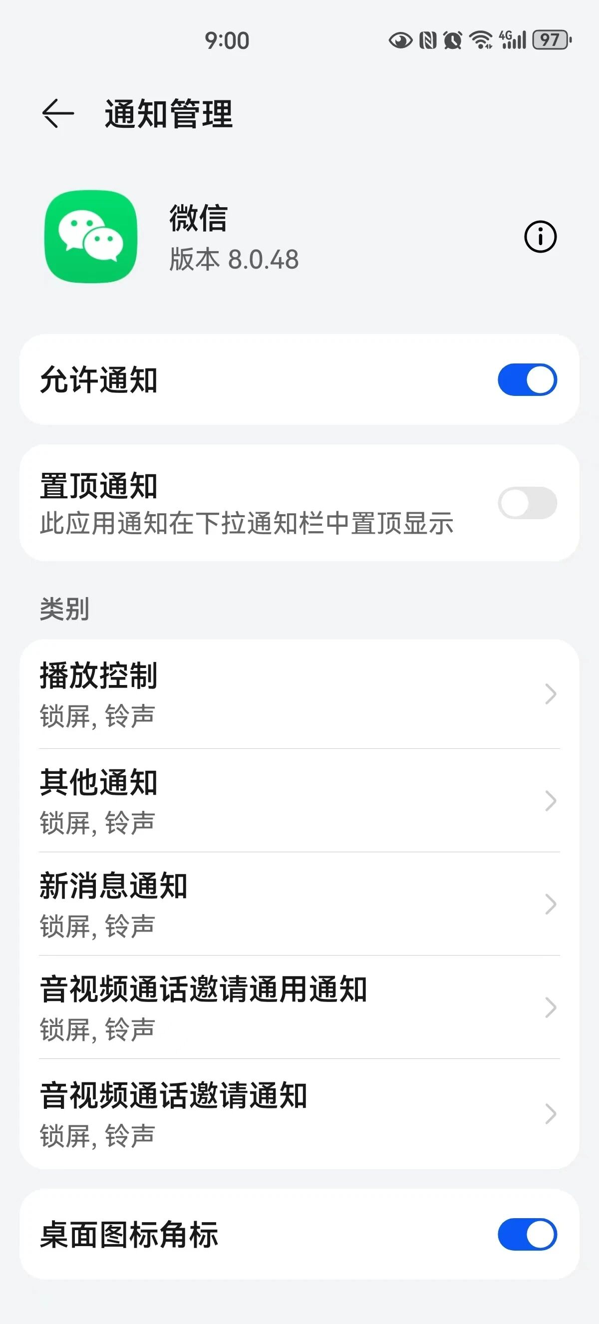 用微信注册了公众号二次开发的平台,接收其平台发送的信息。收到信息提醒时没有提示声音,这是怎么回事?微信和手机本身所有声音设置都开启了。微信服务号和服务通知点击右上角设置消息免打扰关闭了。查看下手机端接收消息通知,开启了微信的允许通知和声音通知。都是开启状态还是接收不到声音提醒,但是会有消息推送一个小红心,就是没有声音(正常聊天的那种声音没有)。以前是有的手机升级了系统就没有声音了。手机型号:华为nove10pro