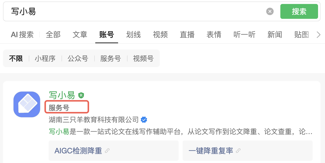 你好,经核实该账号名称可被搜索,你可以再次确认一下。该账号是服务号,建议切换到【服务号】搜索