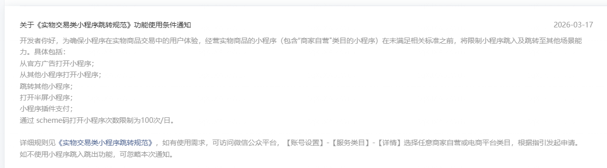 添加了酒品类目后小程序限制跳转,删除后如何解除限制?