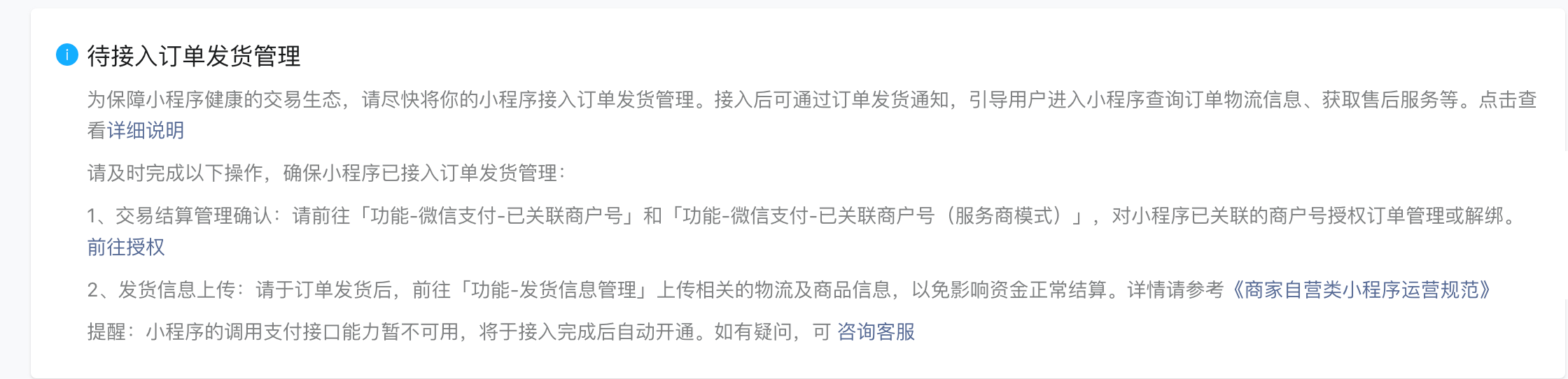 小程序发布以后《“待接入订单发货管理”》,请问这个如何关闭?小程序目前是不需要线上发货以及快递物流到,是下单后供应商直接供给的形式