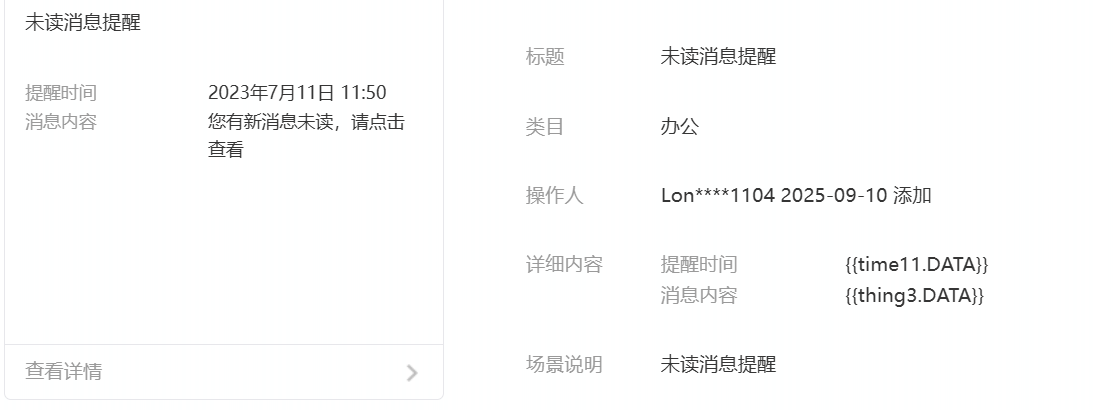 {"data":{"thing3":{"value":"您有新的消息"},"time11":{"value":"2023年7月11日 11:50"}},"lang":"zh_CN","miniprogram_state":"developer","page":"/pages/index/index","template_id":"654","touser":"xxx"}