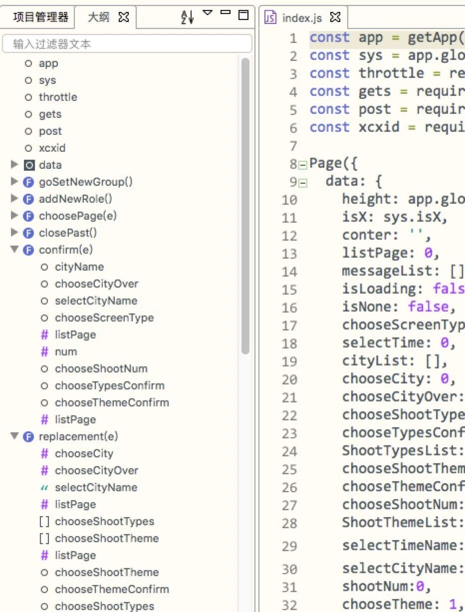 建议在编辑器代码界面增加大纲视图,类似下图
