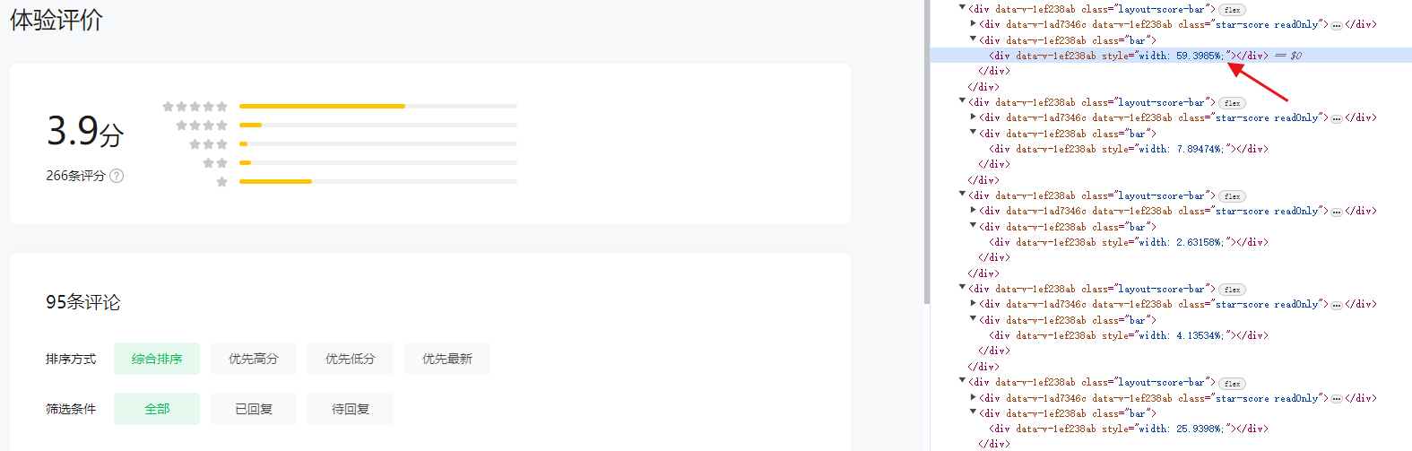 5月30号,显示评分266条,其中五星158个,四星21个,三星7个,二星11,一星69个