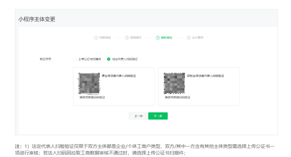 你好!请问下小程序主体迁移过程中的授权验证环节,原主体是公司,目标主体是事业单位,可以使用法定代表人扫码的方式进行验证吗?