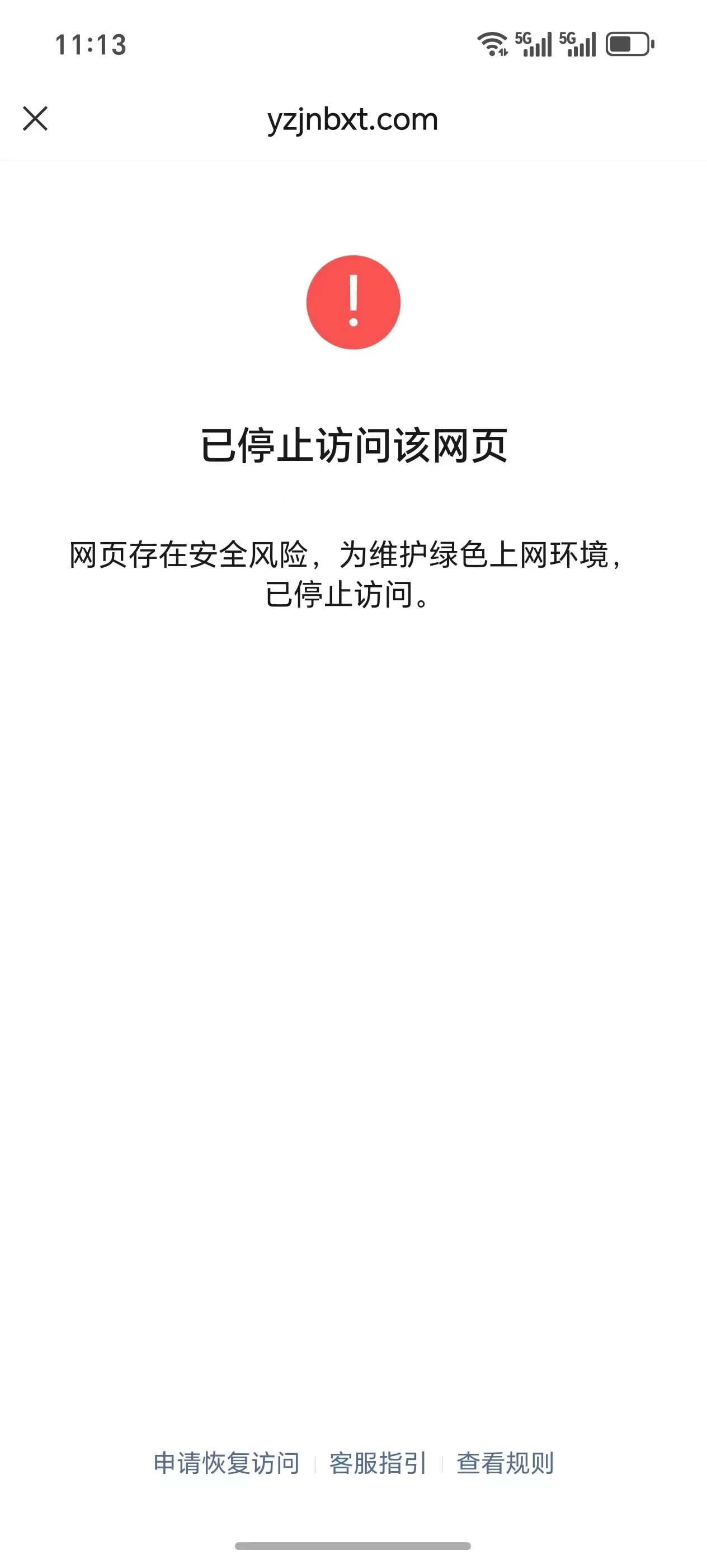 我的链接在微信里面打开提示:已停止访问该网页,网页存在安全风险,为维护绿色上网环境已停止访问。域名是2025年11月13日刚备案好,还没有使用,没有违规,请核查一下,谢谢