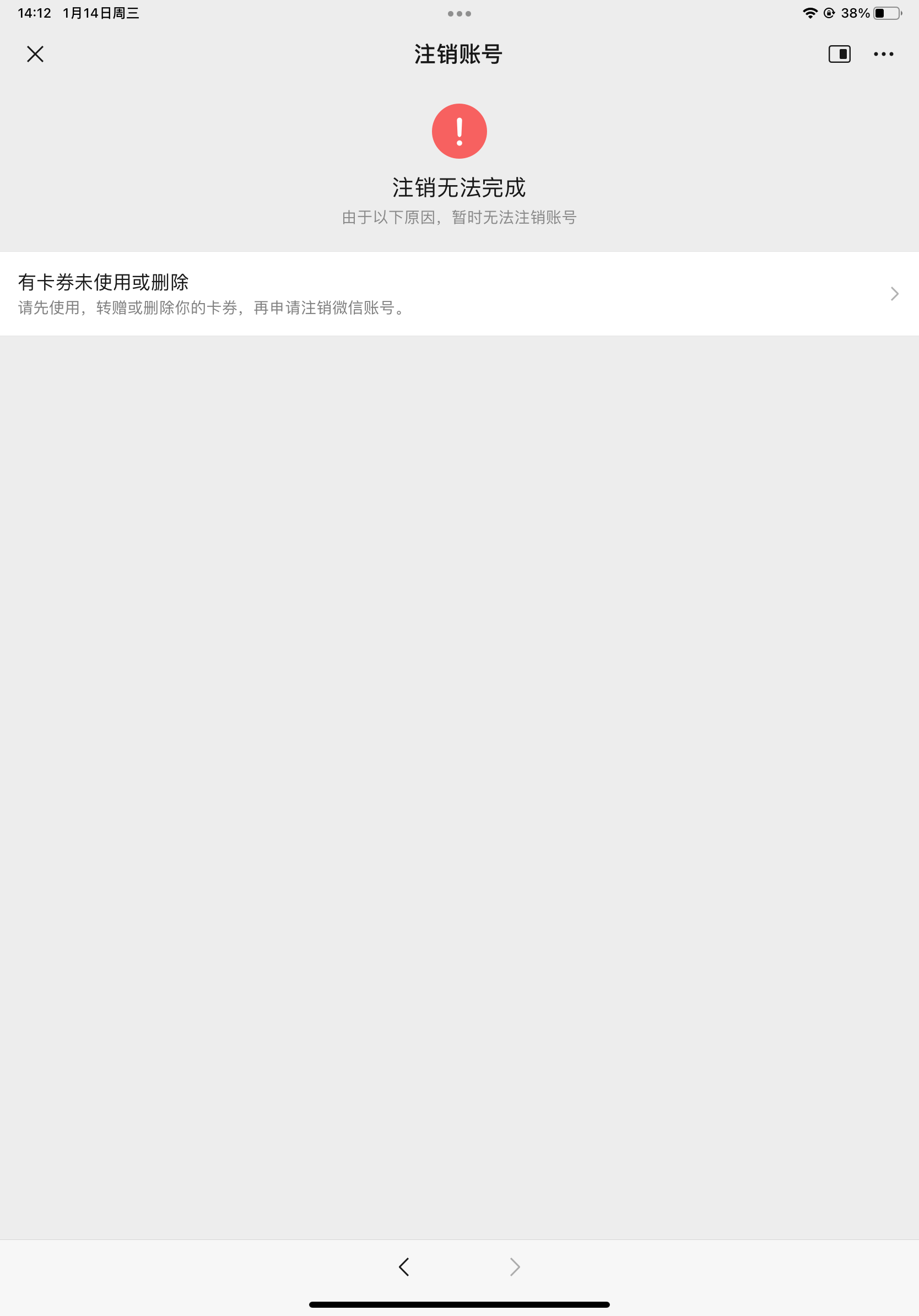 注销微信时已经清除掉所有的卡包卡卷,但还是显示有未清除的卡包卡卷请问该怎么办?