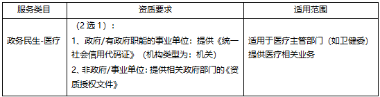【政务民生-医疗】类目:适用于提供适用于医疗主管部门(如卫健委)相关业务服务。