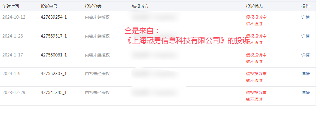 不只一次了,虽然每次最后判定都不成立,“上海冠勇信息科技有限公司”这些行为真的是不厌其烦。他们这些行为让我都不愿意在继续写内容了。。。