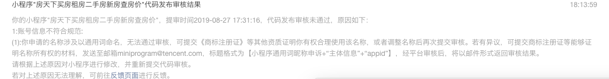 小程序改名已经过审了,而且新名字已经用了一段时间了,突然被通知小程序无法过审,