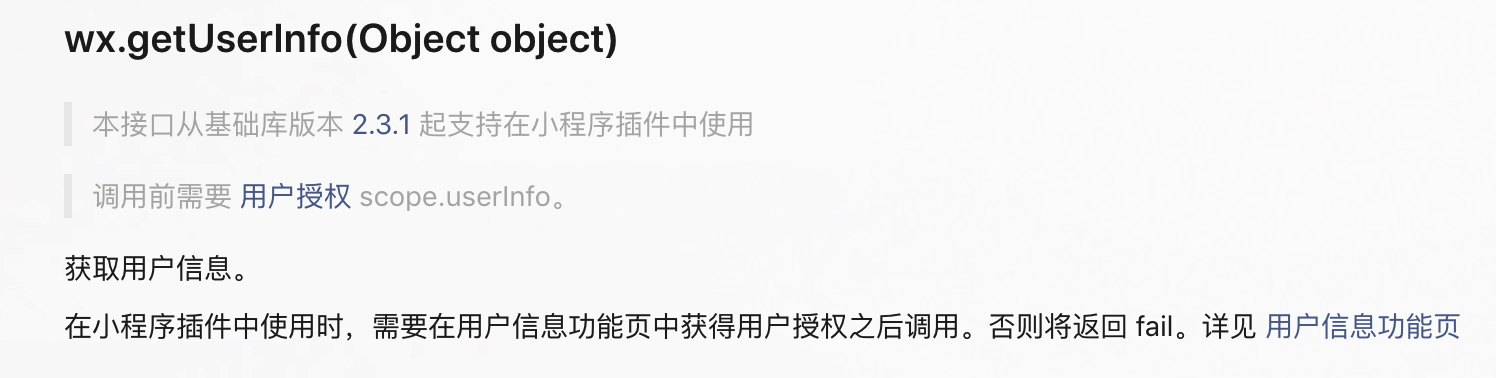 开发流程:先调起wx.getuseprofile,点击授权后,发起wx.login获取code,发送给后端获取openid,然后在wx.checksession的success中获取wx.getsetting的success回调,然后在该回调中再调用wx.getuserinfo接口信息,然后发送wx.getuseprofile和wx.getuserinfo的加密信息和iv给后台解密授权,然后重新刷新页面。