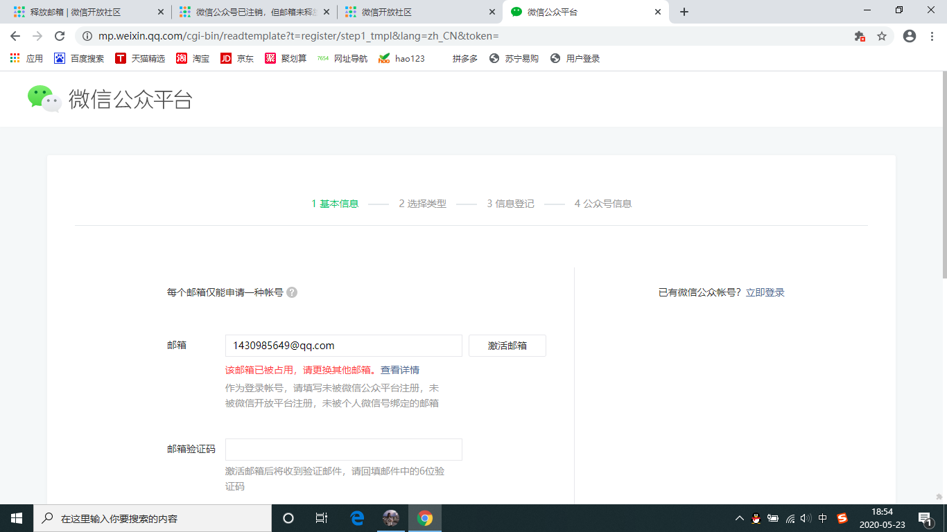 微信公众号未注册,但邮箱注册时提示邮箱被占用?