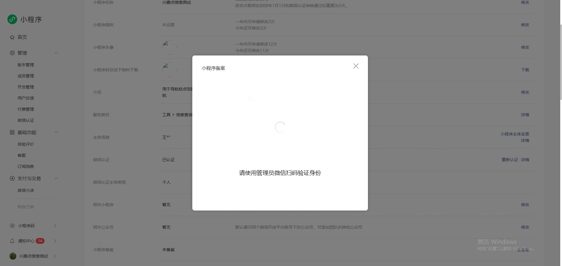 总之就是我需要用到的模块基本都用不了,或是无权限,或是报错误。我回忆之前可能是做过备案注销操作。然而我想重新备案。“去备案”这里的扫码一直扫不出来