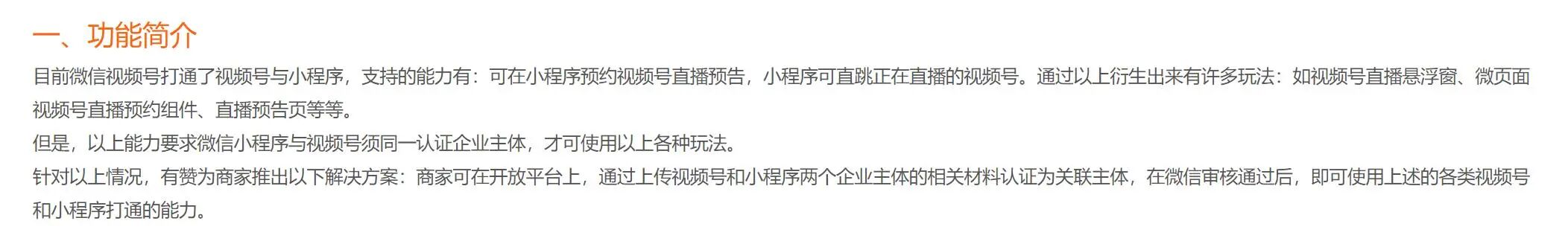 只有企业小程序才支持,默认个人小程序的主体和同样身份证个人视频号主体不算一个人???