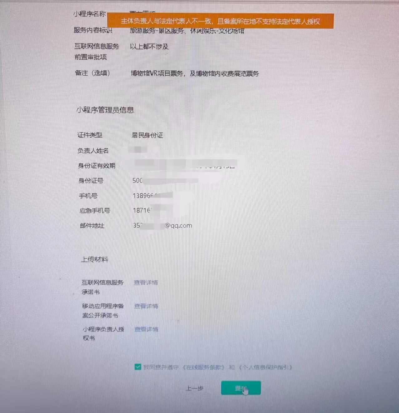 小程序通过了认证,在提交备案审核时提示:法人信息不一致和该地区不支持法人认证。 虽然我们公司之前更换过法人,但是上传的营业执照和法人信息都是最新的法人信息,但依然显示错误,需要怎么处理?