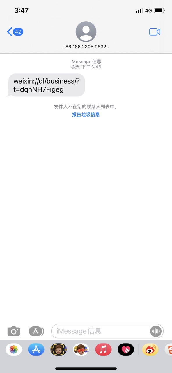 1.短信收到的是文本信息,不是链接,不能点击跳转;