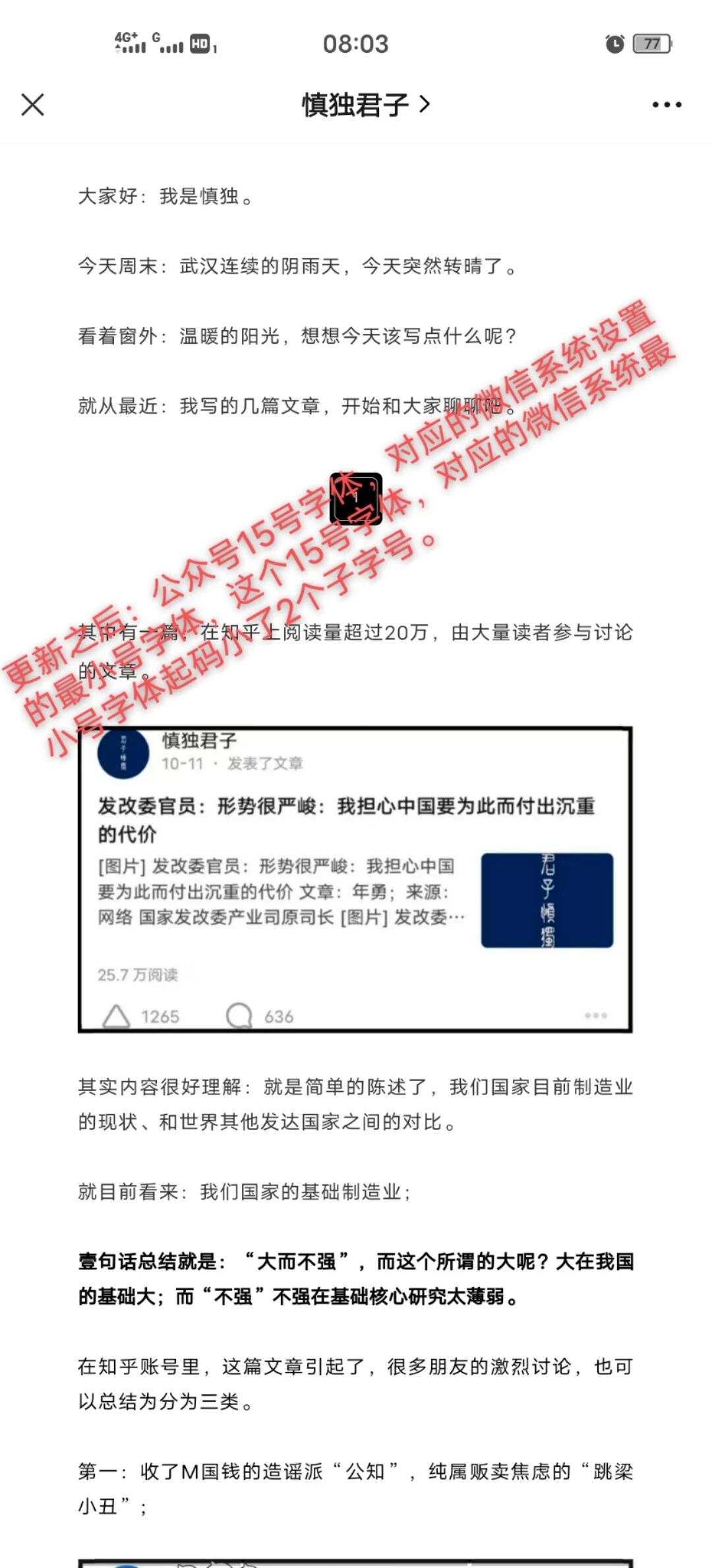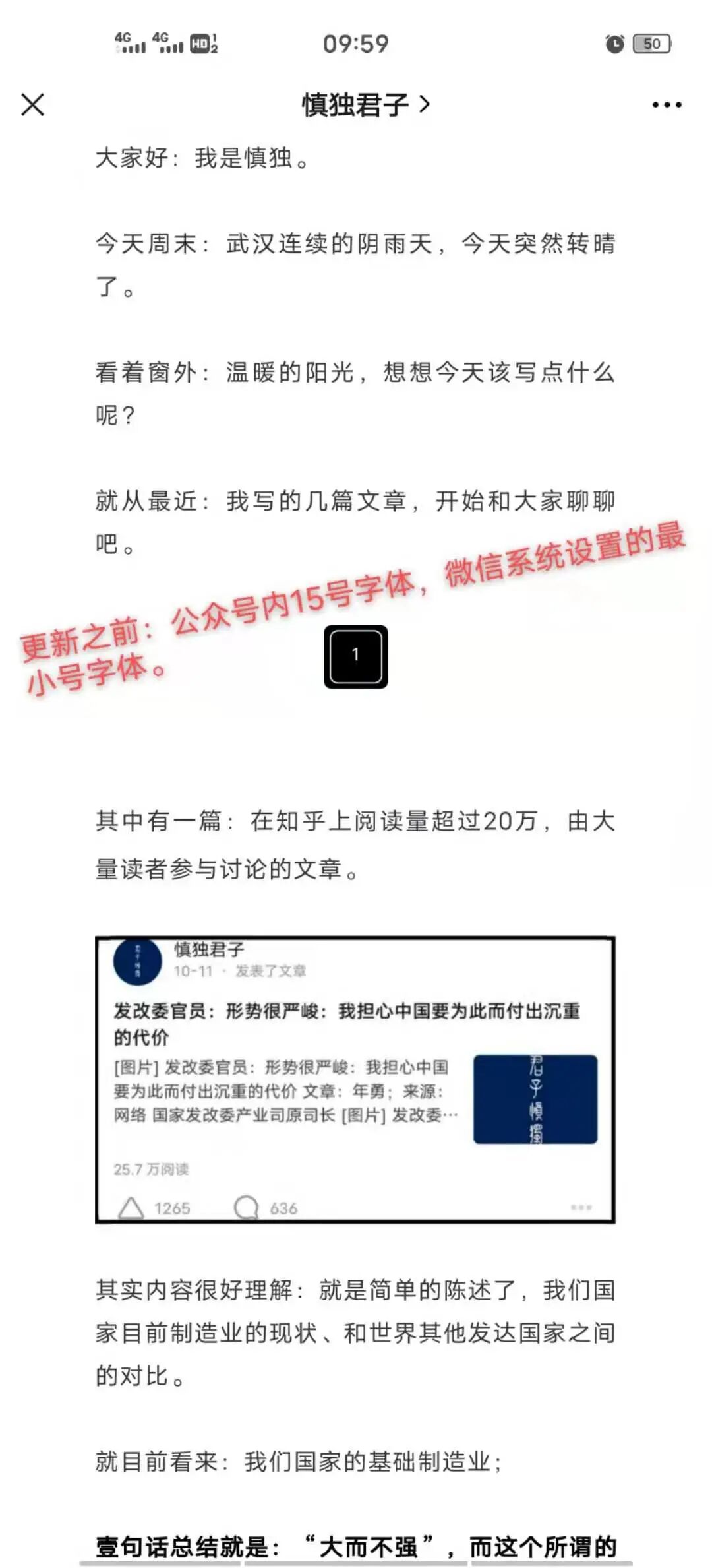 但是看公众号文章就显小了,还好字体可以调整,调回标准就可以了
