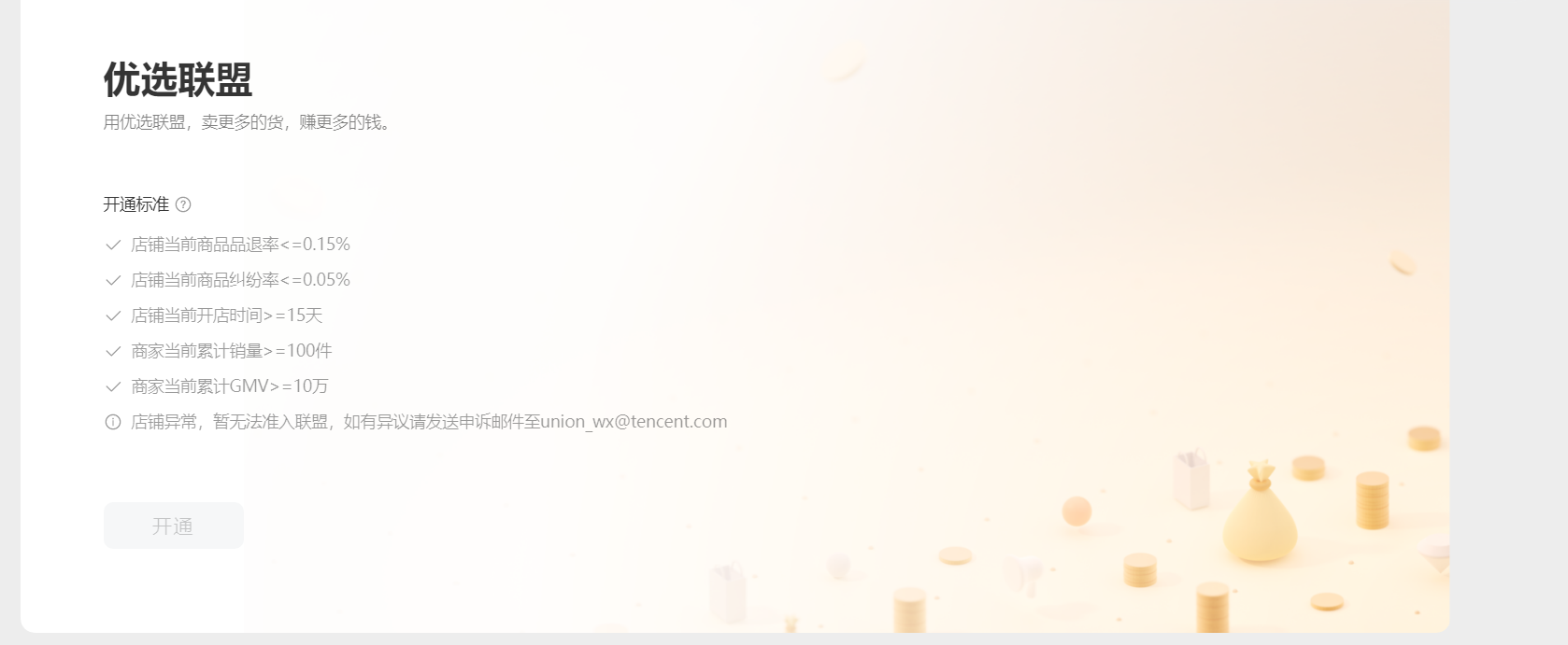 你好,辛苦发送申诉邮件至union wx@tencent.com