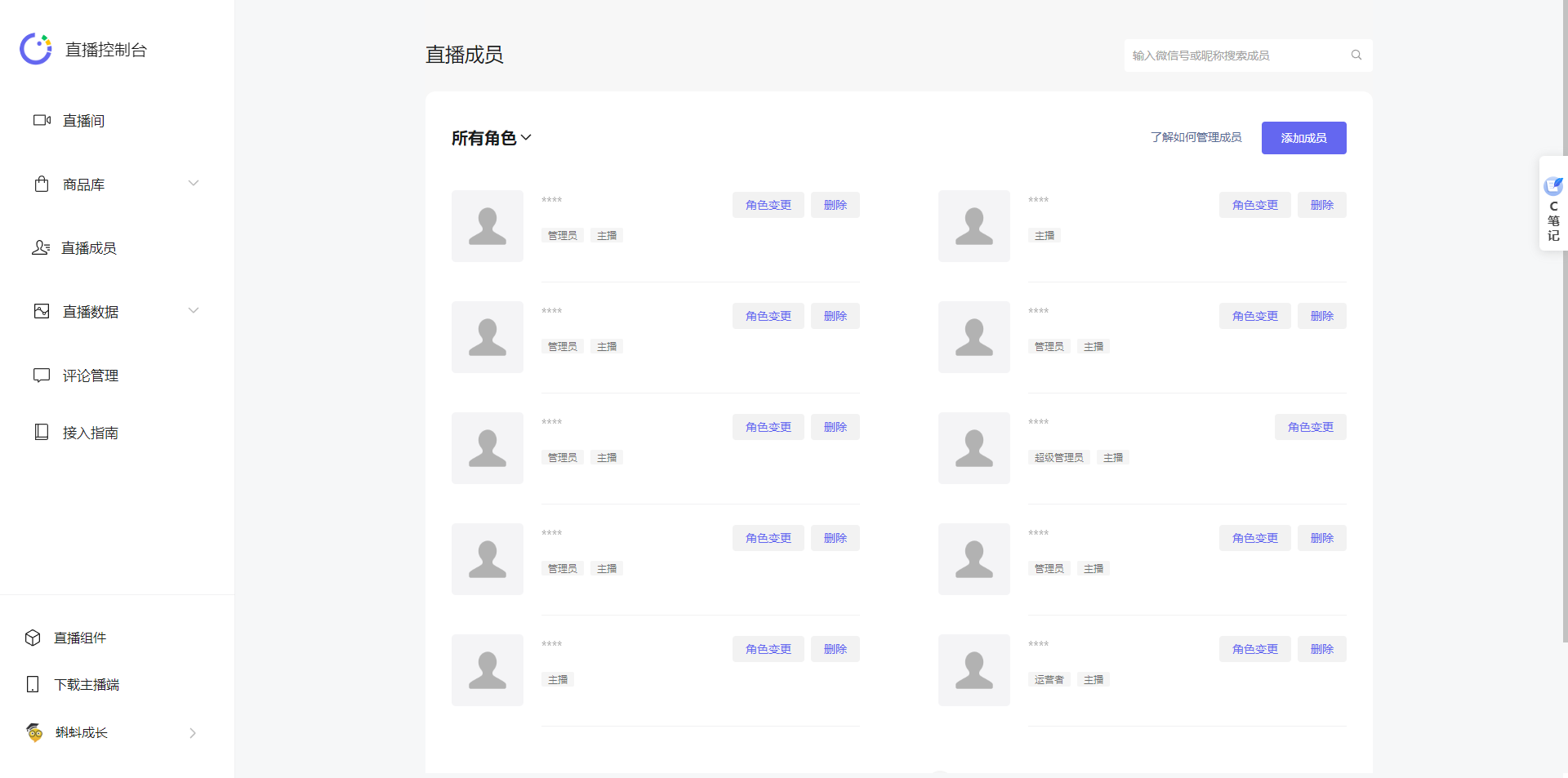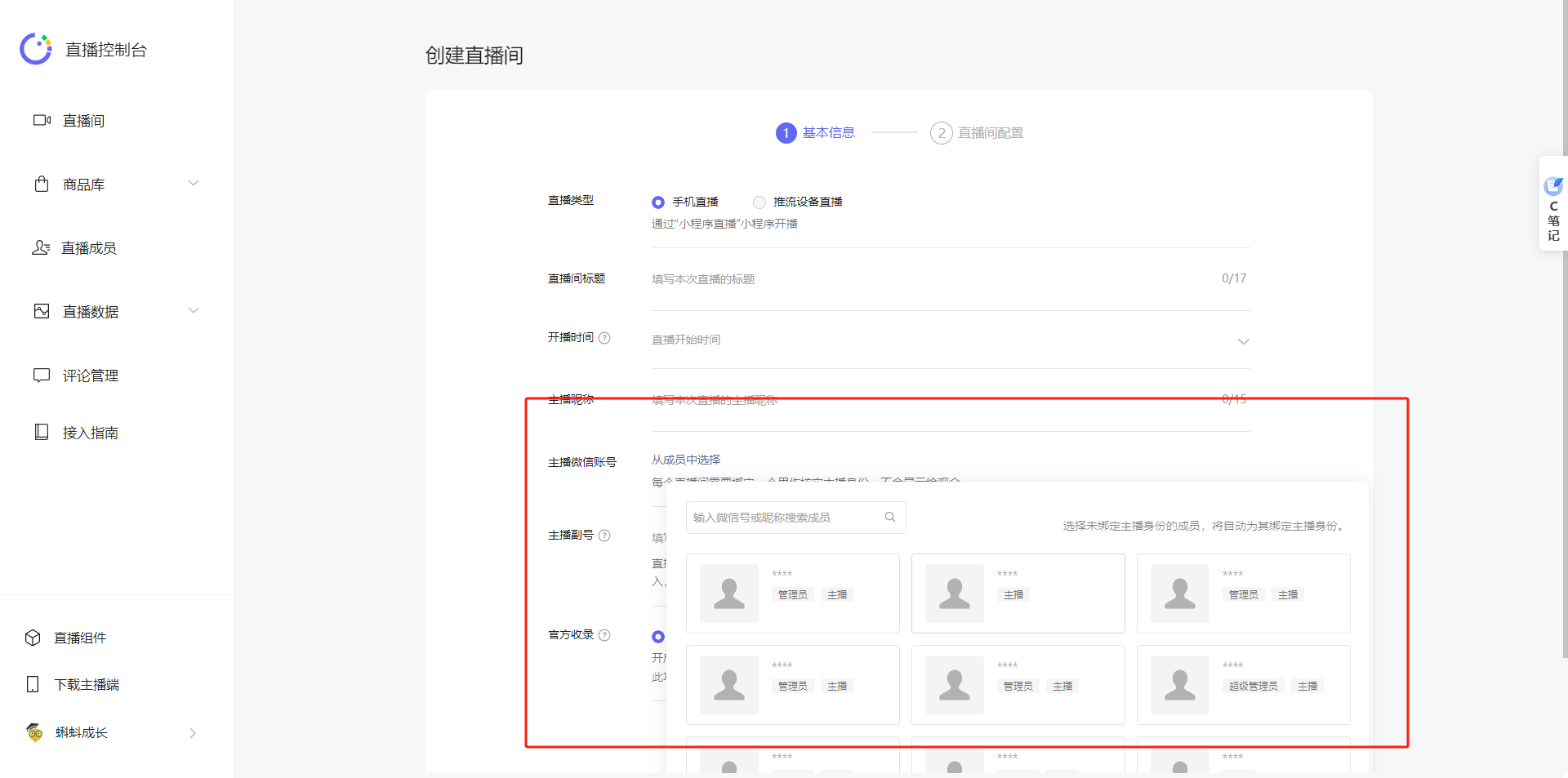 创建直播间时无法选择主播,查看直播成员也无法查看。