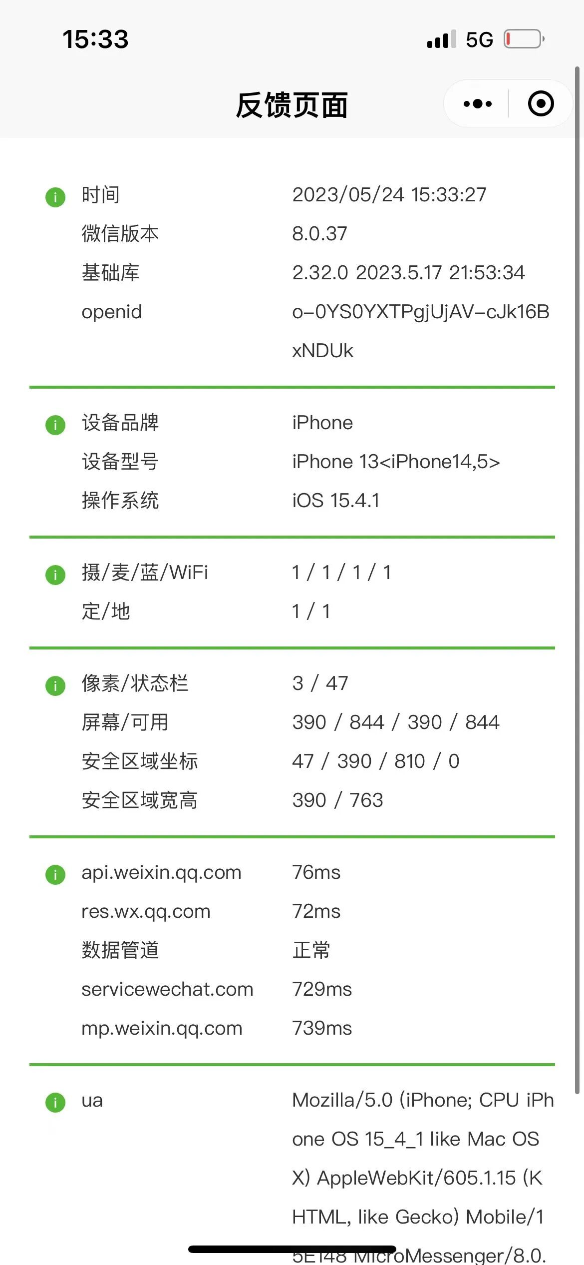 ios小程序体验版 ...》开发调试》打开调试 后未出现绿色悬浮按钮,初始化接口未调用体验版开发板正常状态,小程序id