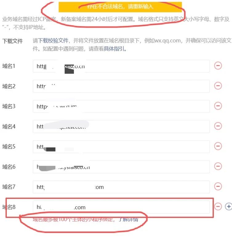 我们的业务需要用户绑定我们的域名地址,内嵌到客户小程序进行展示,目前达到了上限100个,历史旧的无效绑定无法主动清除,导致新业务没办法继续开展,希望能够开放一些限额,或者支持清楚无效绑定。