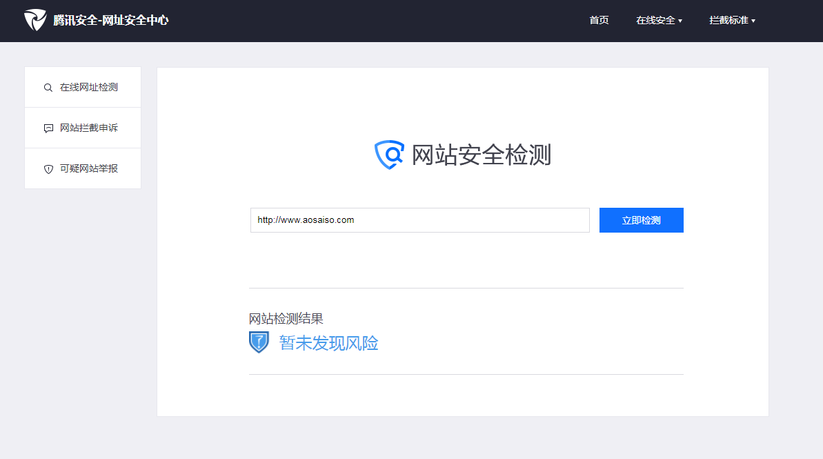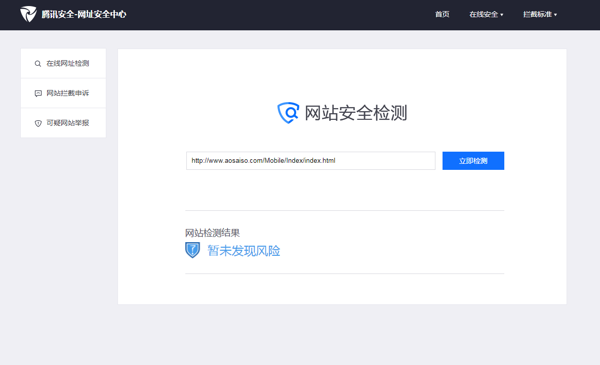 在腾讯安全-网址安全中心检测2个链接显示:暂未发现风险