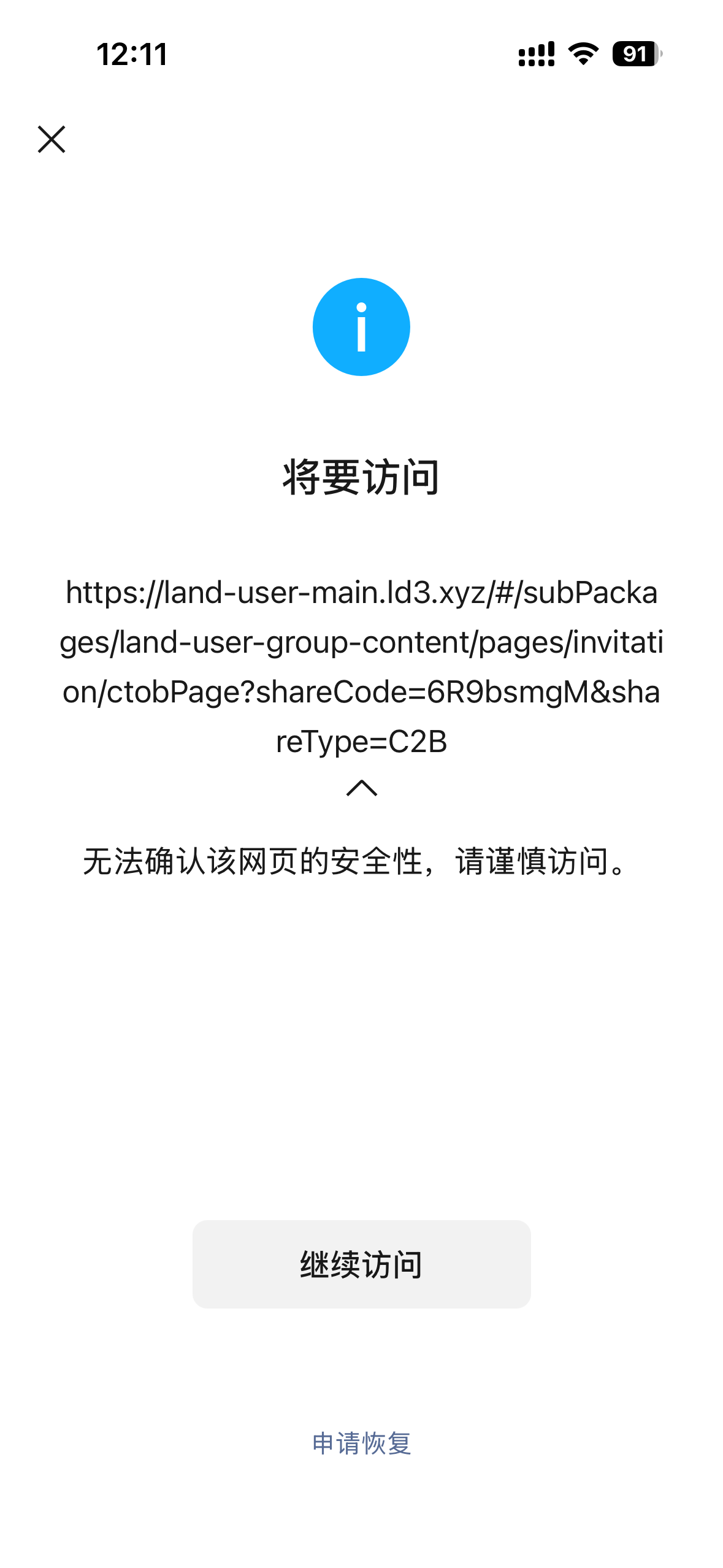 你好,经审核,域名【ld3.xyz】下的链接【https://land-user-main.ld3.xyz/#/subPackages/land-user-group-content/pages/invitation/redPacktPage?shareCode=BUrHgLVa&shareType=C2C】的内容存在违反《微信外部链接内容管理规范》的第1条“诱导分享类内容”,请对相关内容修改后进行申诉;申诉方式可点击停止访问页底部入口进行操作,我们会在三个工作日处理,请耐心等待。 详细规则请参考《微信外部链接内容管理规范》http://weixin.qq.com/cgi-bin/readtemplate?t=weixin_external_links_content_management_specification