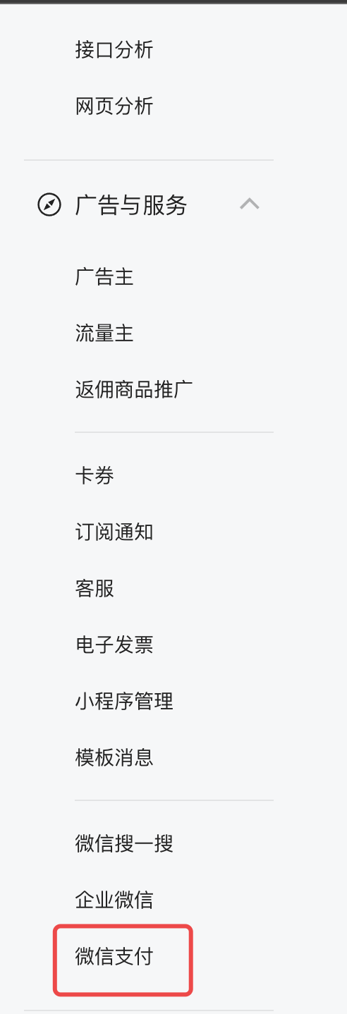 微信支付在广告与服务栏目里面