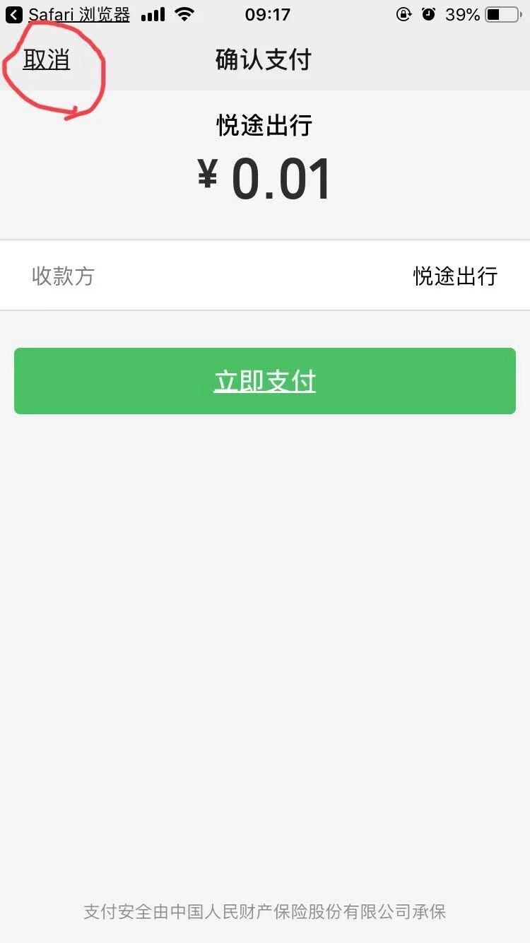 非微信环境调起微信支付调起中间页之后到付款页的时候点击取消按钮的回调是怎么写的??