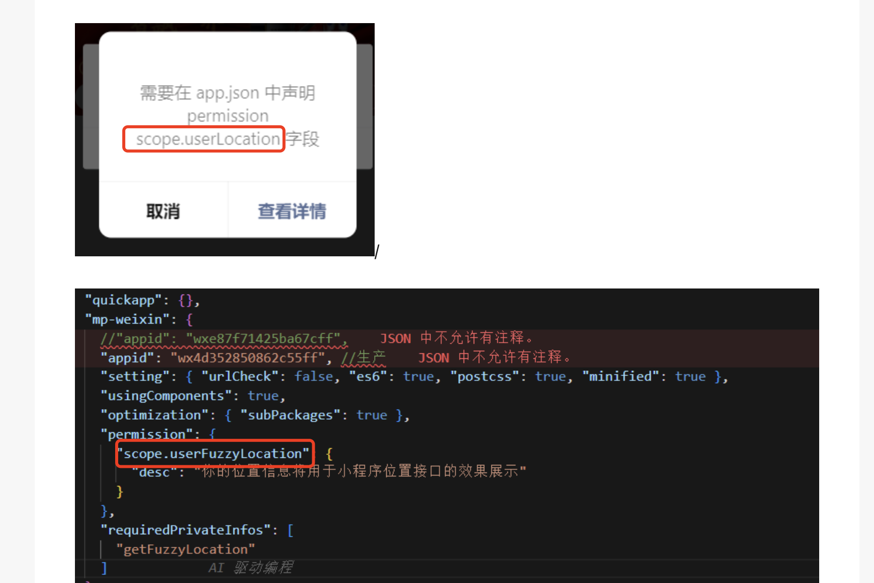 在配置模糊地理位置的时候,都配置好了,项目都运行了,开发者工具清缓存和重新打开项目还是会报这个问题,然后上传提交体验版还是用手机测就不会有这个问题,开发者工具里面就会报这个