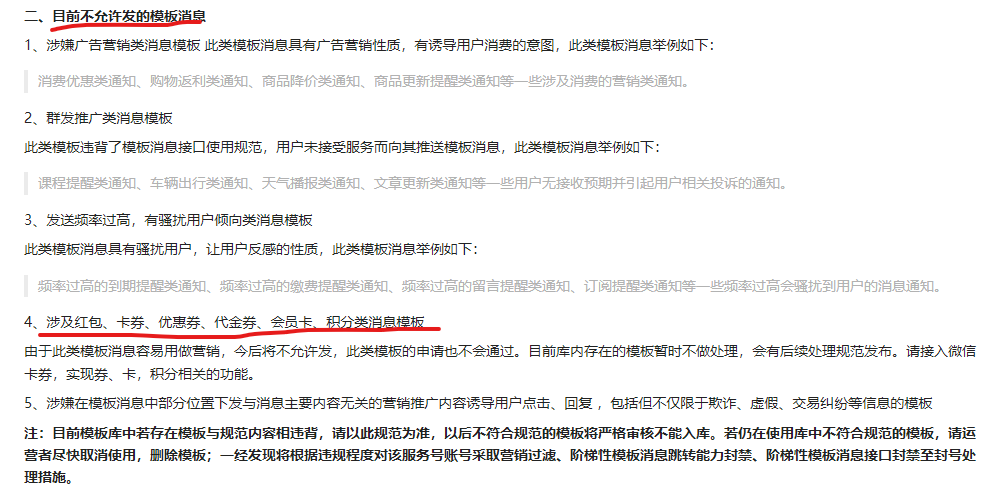 1、请正确理解模板消息接口,规范使用接口能力,共建良好生态。后续如果存在违规,平台会按照梯度处罚规则进行加重处理。