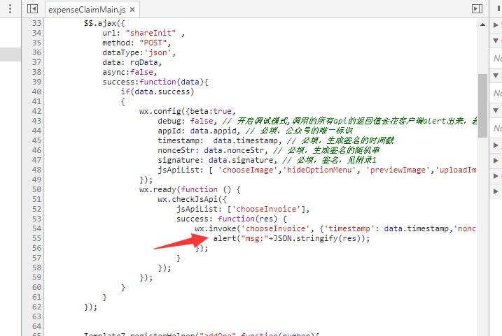 debug: false, // 开启调试模式,调用的所有api的返回值会在客户端alert出来,若要查看传入的参数,可以在pc端打开,参数信息会通过log打出,仅在pc端时才会打印。