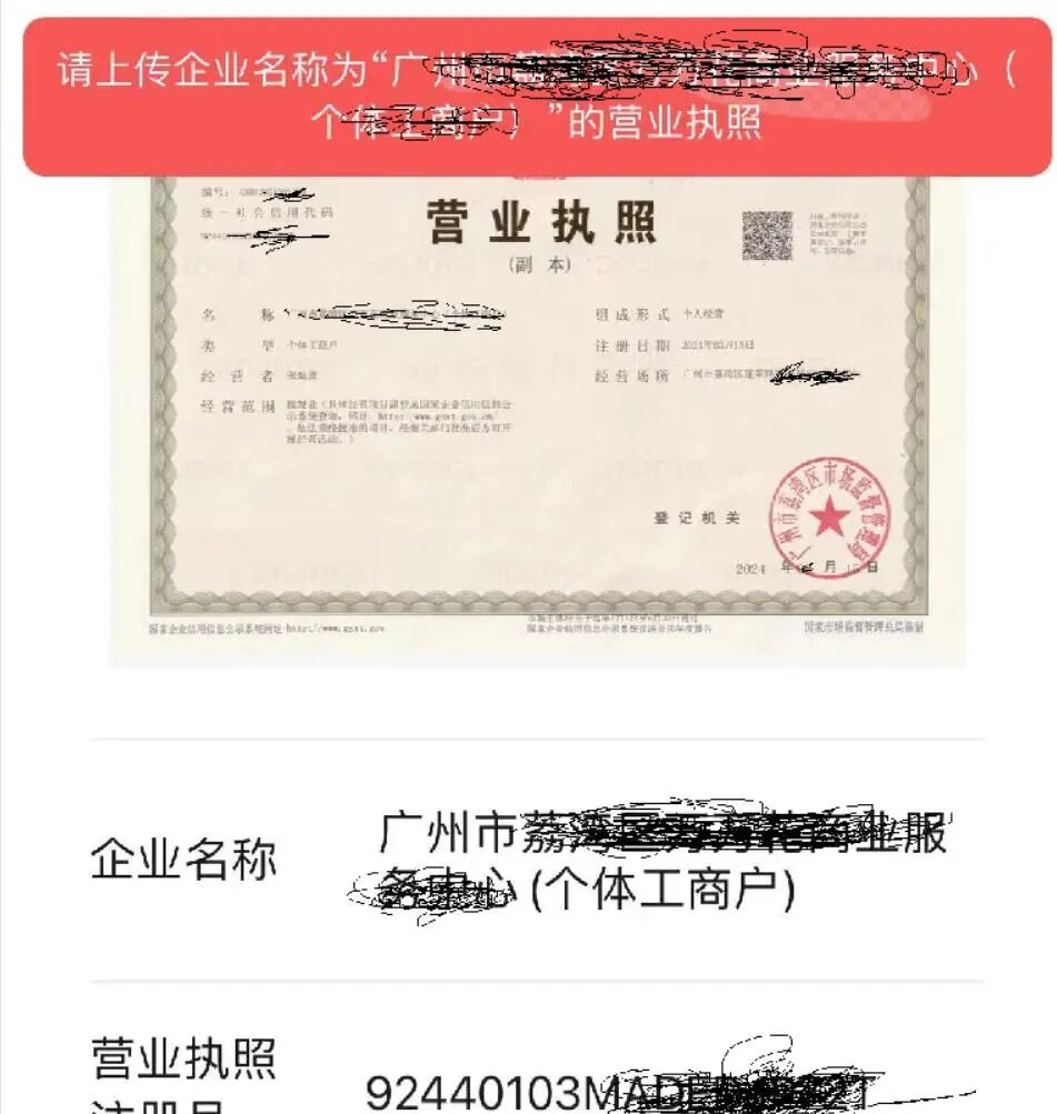 我注册微信支付后,申请微信小商店,已按要求上传营业执照;但还是提示再上传执照?不能点击下一步.