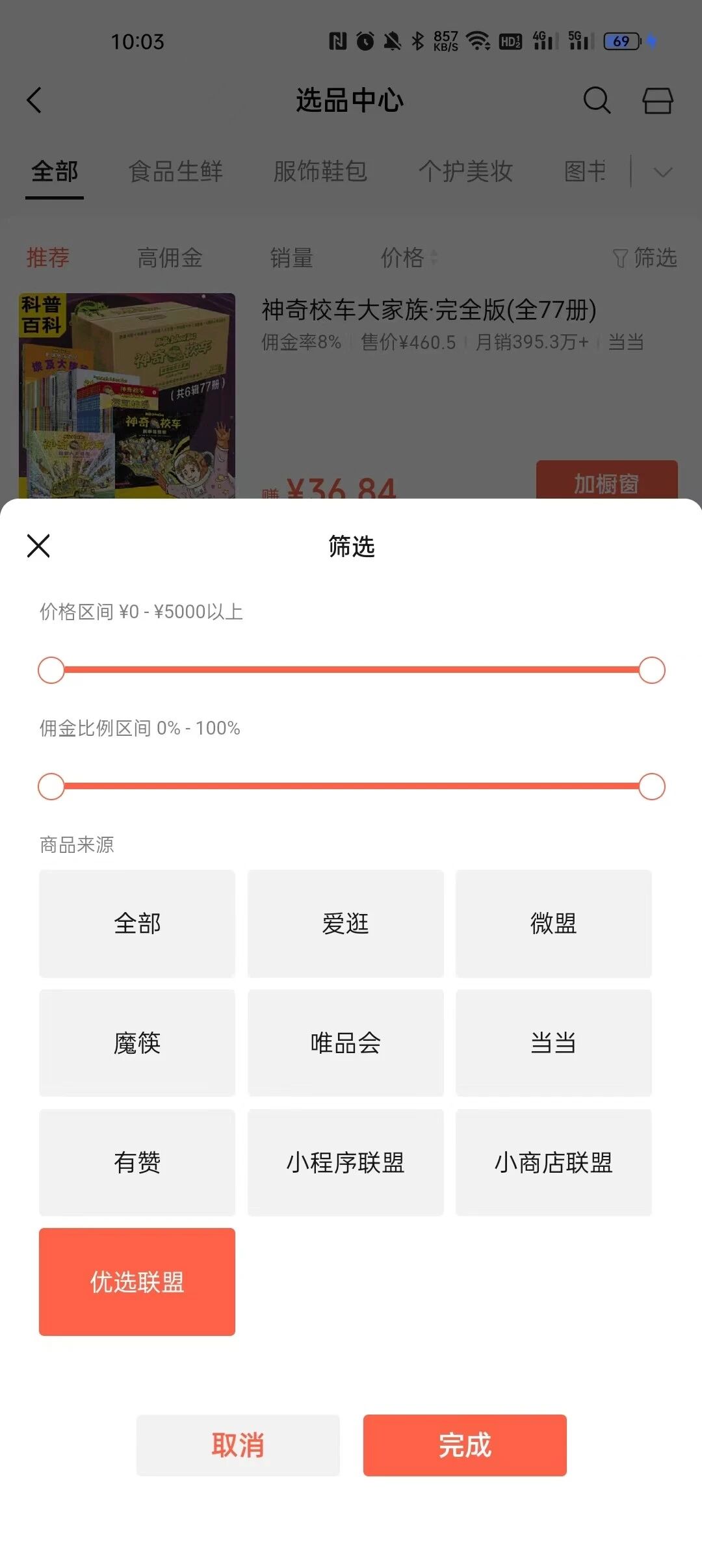 下图可以在视频号的选品中心,点击右上角的筛选可以看到: