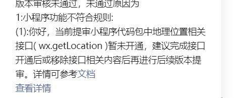 你好, 若小程序业务场景内未含有wx.getLocation接口使用场景,建议移除提审版本代码包中wx.getLocation接口相关代码内容,重新提交版本审核。