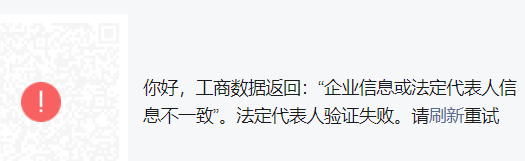 微信公众号认证时,法人验证失败,显示企业信息或法定代表人信息不一致,