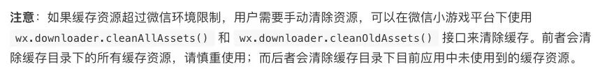 项目使用的是cocos creator,在cocos官方文档上看到资源超过限制的解决办法,可是文档提到的API,我在小游戏的开发文档上没有看到, 使用到项目里,开发者工具也提示错误。下附文档截图:![]()