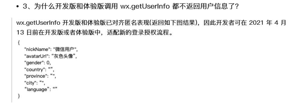 如果需要获取用户的信息 请使用wx.getUserProfile
