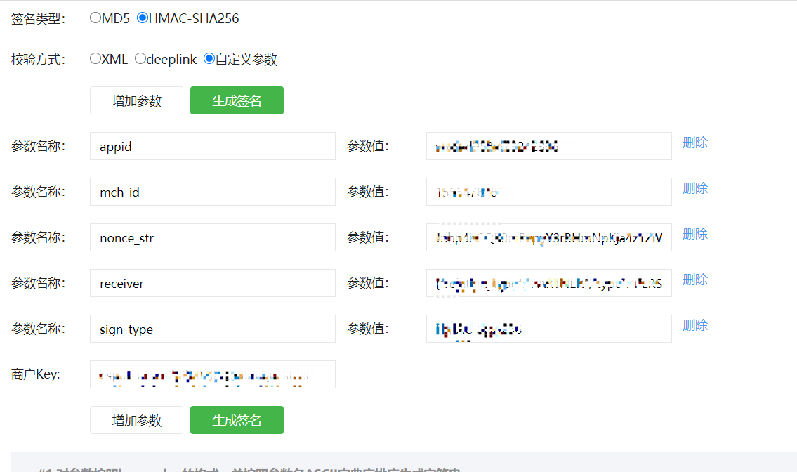 3,确认接口实际的请求参数与生成签名原串的参数一致,不能增加或缺少参数(可通过打印签名原串进行排查)